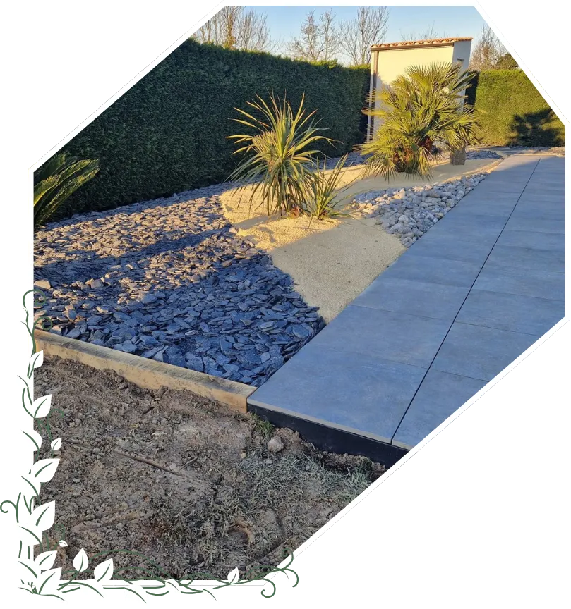 Aménagez vos cours et allées pour qu’elles soient à la fois pratiques et esthétiques. Nous réalisons pavés, dalles, béton ou enrobé, adaptés à votre jardin, pour faciliter vos déplacements tout en apportant charme et harmonie à vos espaces extérieurs. Nos aménagements allient solidité et élégance pour un résultat durable et raffiné.